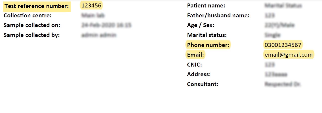 If Lab has perfomed a test for you in the past, please locate your Test reference number and Email or phone number in the top of your receipt. This will help us keep all of your information in one record.